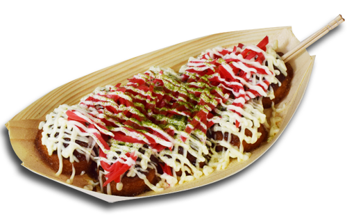 のせられています。たこ焼き一玉頬張ると