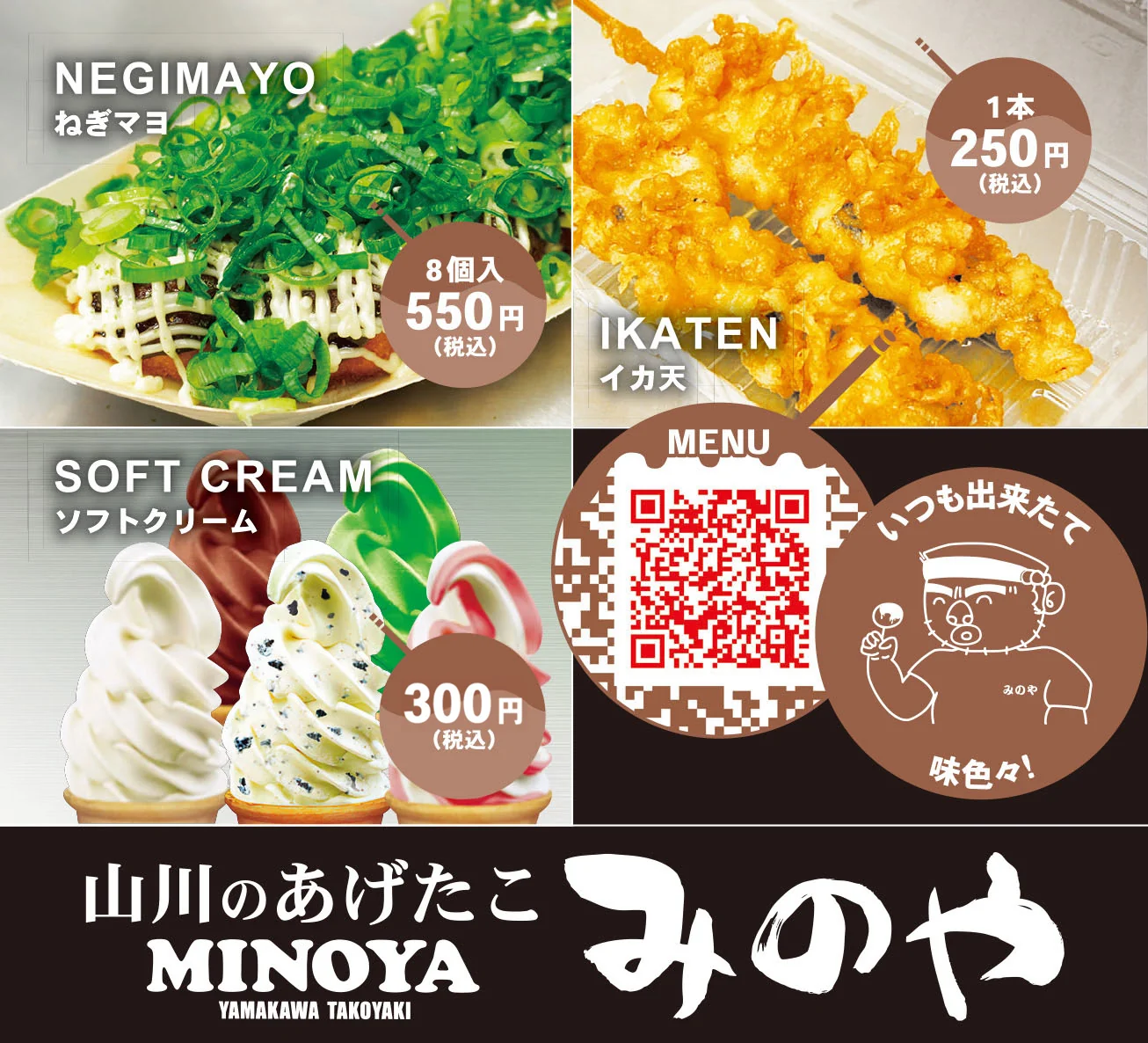 たこ焼きはどの組み合わせでも3パックごとに50円値引き!